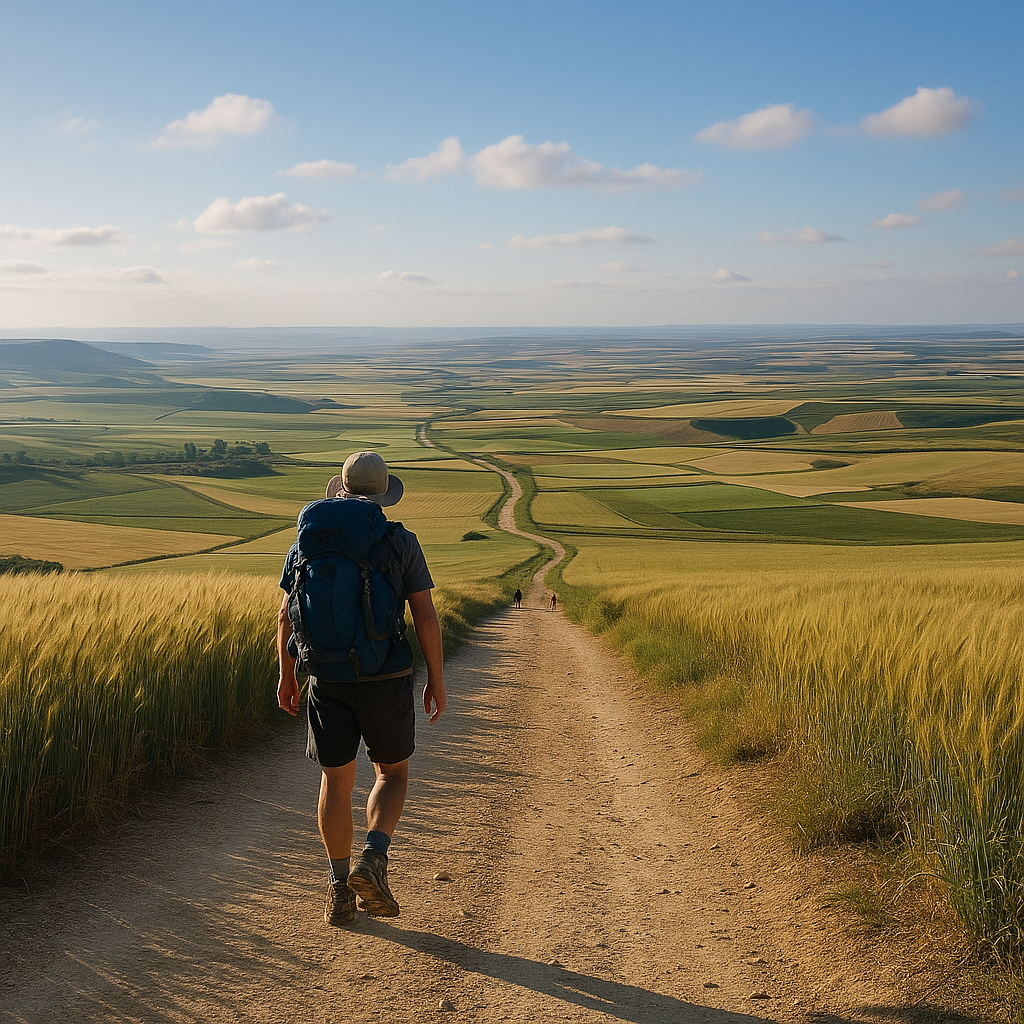 멀리 끝없이 이어진 황금빛 벌판, 마치 바다처럼 출렁이는 밀밭, 길게 뻗은 흙길 위로 점처럼 움직이는 순례자들의 행렬. 바람은 얼굴을 스치며 “환영한다”고 속삭이는 듯했고, 새들이 푸른 하늘을 가로질러 날아갔습니다. 그 순간 저는 시간이 멈춘 듯한 착각에 빠졌습니다.