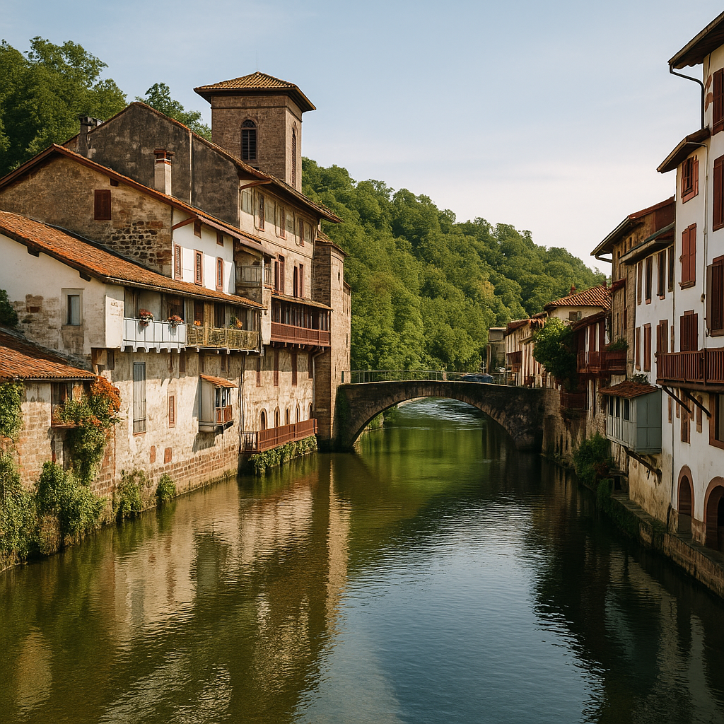 정오쯤, 버스는 피레네산맥 자락 깊숙이 자리한 생장피드포르에 도착했다. 생장피드포르는 프랑스 남서쪽, 바스크 지방의 깊은 골짜기에 자리한 작은 도시이다.. 이름 그대로 “산(피레네)의 발치에 있는 요새 도시”라는 뜻을 지니고 있다. 12세기 무렵부터 산티아고 순례길(프랑스 길, Camino Francés)의 출발점으로 자리매김해왔다.. 고대에는 나바라 왕국의 요충지였고, 지금도 중세의 성문과 성벽이 고스란히 남아 있다. 성문 중 하나인 “포르트 생자크(Port de St-Jacques)”는 유네스코 세계문화유산에도 등재되어 있어, 모든 순례자들이 반드시 통과하는 상징적인 관문이다. 마을 입구에서 보이는 풍경은 고풍스러웠다. 붉은 지붕과 벽돌 건물이 강 양옆으로 늘어서 있고, 그 가운데 다리 하나가 고요히 걸려 있었다. 그 다리를 건너는 순간, 마치 새로운 세계로 들어서는 듯한 기분이 들었다.